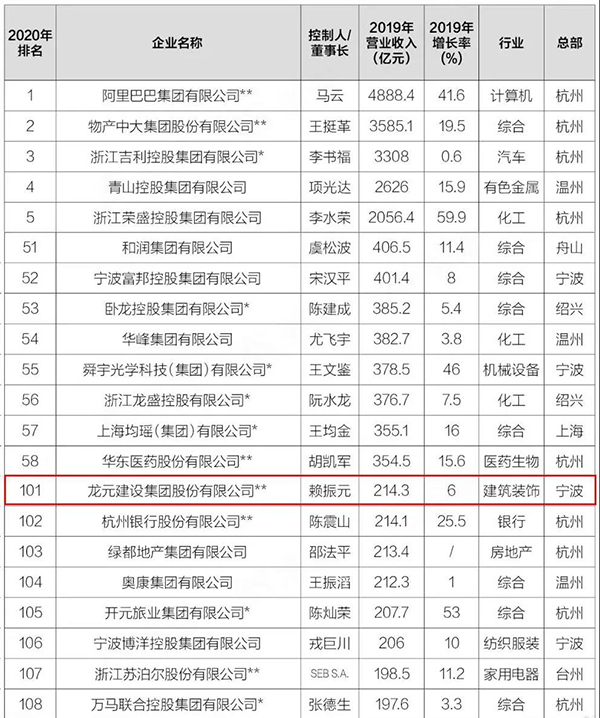 819日,望潮聽濤•浙商全國500強研討會在杭州舉行。會上,由(yóu)《浙商》雜誌獨家製作的“浙商銀行·2020浙商(shāng)全國500強”榜單(dān)正式發(fā)布。香蕉啪啪视频(yuán)建設集團以(yǐ)214.3億元的營業(yè)收入榮列浙商(shāng)全國500強第101位。